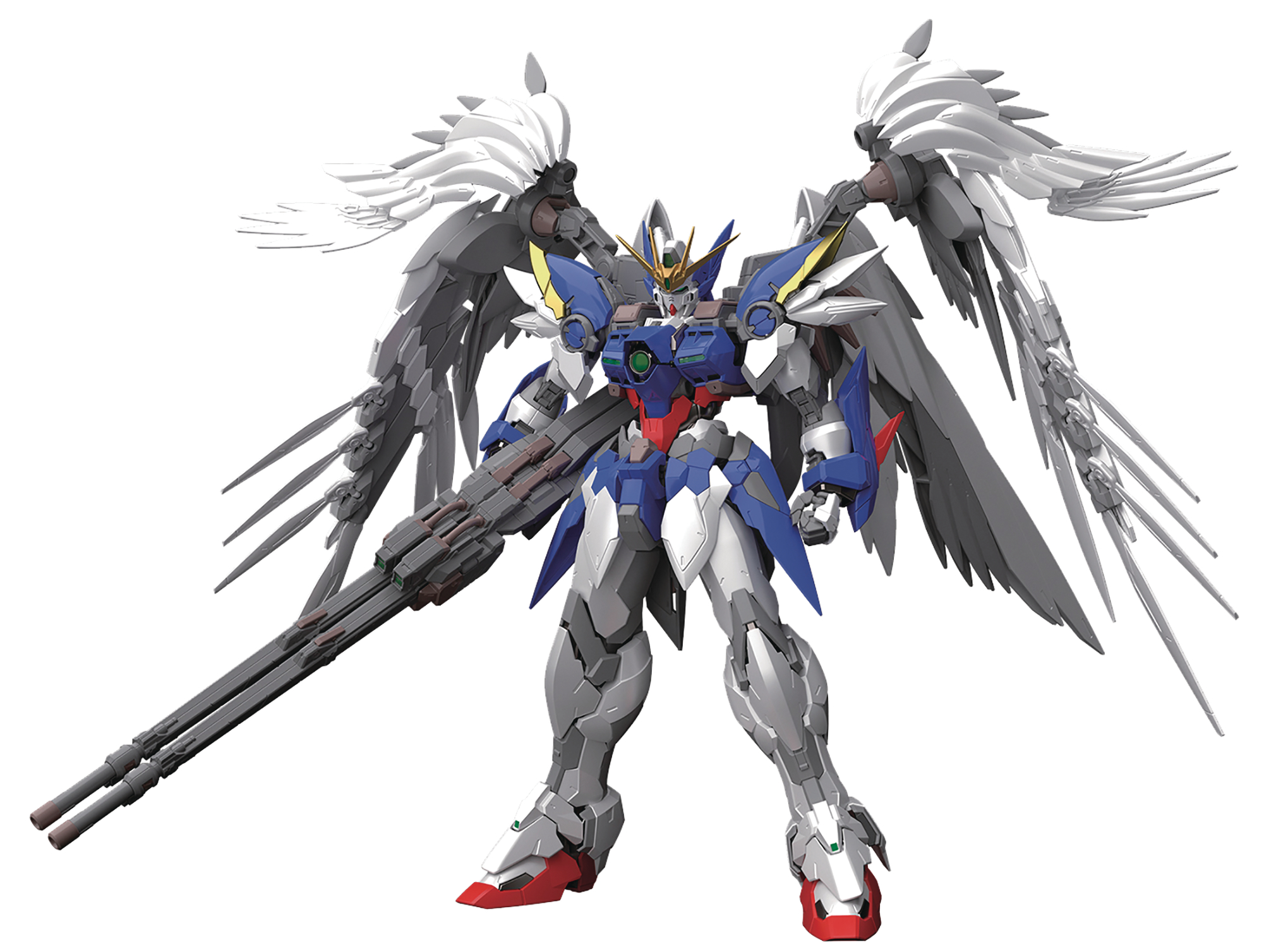 Gundam Wing EW manga, it now features a transforming Neo-Bird mode, opening armor gaps for Zero System use, and six wings. Each Hi-Resolution model kit comes with a combination plastic and diecast pre-built frame that offers extraordinary detailing and posing capabilities. Set includes Twin Buster rifle, beam saber x2, 2 wires, and shield. Gundam frame x1. Runner x15, Action Base 4, Instruction manual x1. Stands approximately 7" tall.