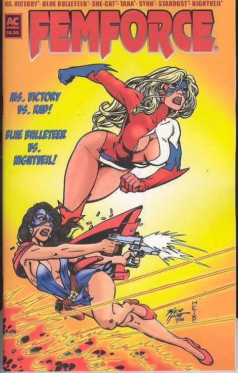 Lured into battle, Ms. Victory finds the only way she can she can save the life of her daughter is to beat her in hand-to-hand combat. Nightveil learns her new adversary is the Blue Bulleteer! How can a pair of .44 caliber pistols stand up to the might of the Mystic Maiden? Finally, a young Tara Fremont finds a Siberian tiger more ally than adversary.