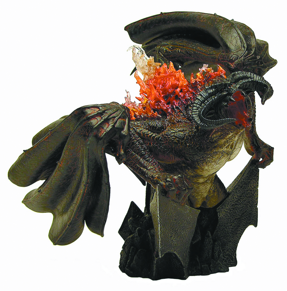The great Balrog of Moria was the first great test of the Fellowship of the Ring, causing them to flee for their lives. Ancient beyond compare, dating back to the First Age and the reign of Morgoth, the Balrog has no equal in causing terror. The Balrog mini-bust has a light-up feature, stands 8" tall and 9" wide, and is cast from polyresin. Comes with a hand-numbered Certificate of Authenticity, and is painted and ready to display.