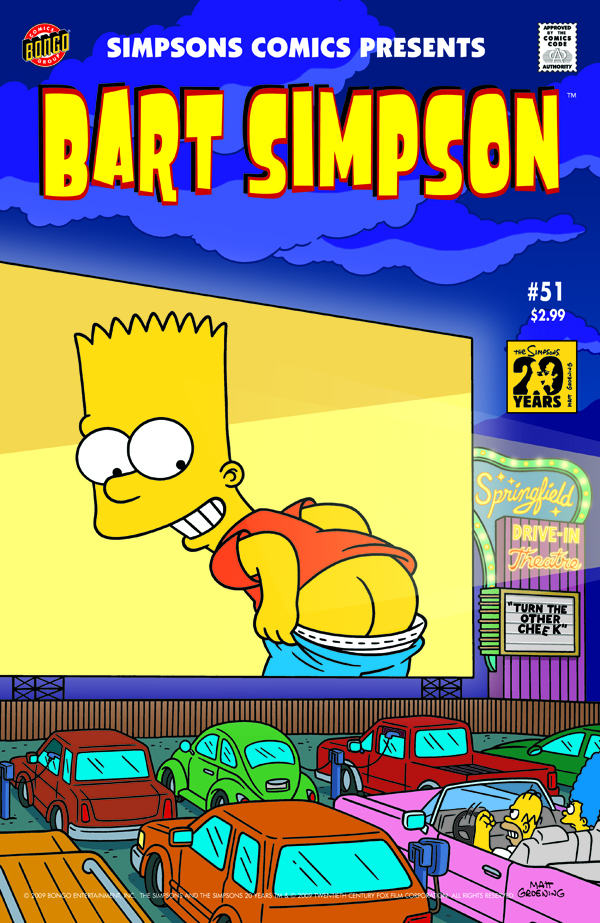After being turned away from a horror movie for being underage one time too many, Bart takes matters into his own hands and sets up his own backyard movie theatre after Grampa unearths a collection of old-time horror classics. Then, after an accident at Frink Labs, Bart believes he has become invisible and sets up one of his biggest pranks ever. Also, Sergio Aragon s' regular feature "Maggie's Crib."