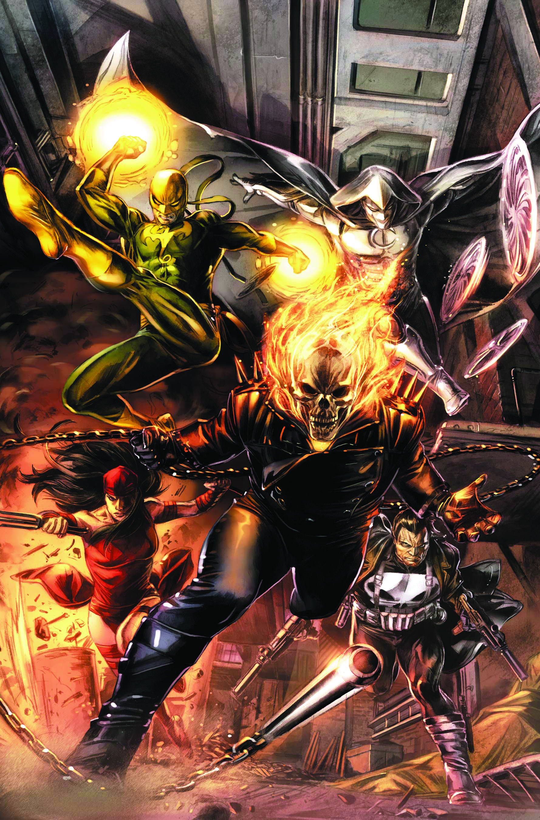 In the aftermath of Shadowland, Marvel's greatest street heroes - Punisher, Moon Knight, Shroud, Elektra, Paladin, Silver Sable, Ghost Rider, Iron Fist, Falcon, Misty Knight and more - leap into one all-new series! Who has brought these dangerous loners into one fighting force? How is this network different from all other teams? Who is their first target, and what mysteries wait for them? Discover the answers and enter the action on Marvel's mean streets, courtesy of fan-favorite writers Dan Abnett & Andly Lanning (THE THANOS IMPERATIVE, PUNISHER: YEAR ONE) and artist Brad Walker (GUARDIANS OF THE GALAXY)!