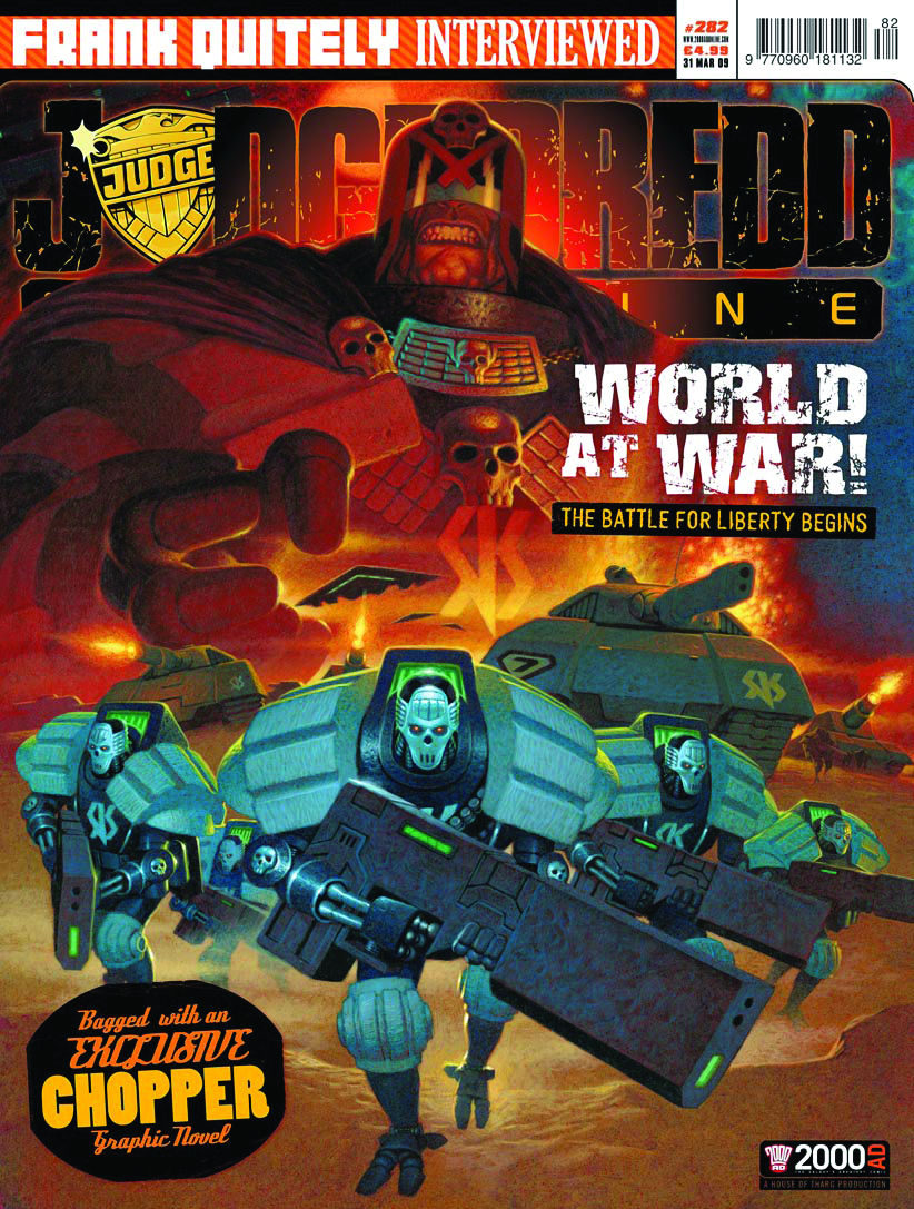 More action and adventure in the future-shocked world of Judge Dredd! Two new stories commence this issue: the revolution is kicking into gear and Mega-City One is bringing out the big guns in