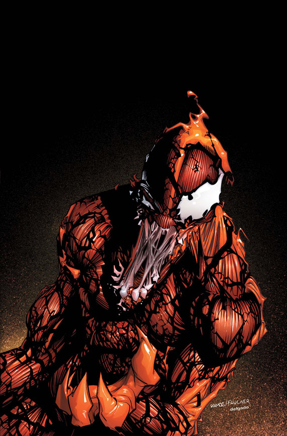 Carnage's maniacal reign of terror continues, courtesy of the critically acclaimed creative team of Zeb Wells and Clayton Crain! Spider-Man and the Avengers must go on a brutal hunt to capture Cletus Kasaday before a small town in the American heartland falls under his mass-murdering spell! Buckle in and prepare for a violence packed adventure! Carnage U.S.A. wants YOU this December!