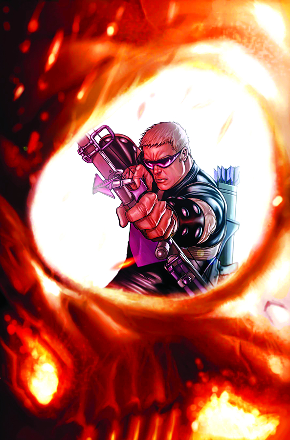 The Avenger Hawkeye has followed the trail of destruction and ruined souls the Ghost Rider has left in its burning wake. And he isn't the only one with his sights set on the Spirit of Vengeance. The wild hunt for the Rider begins here.