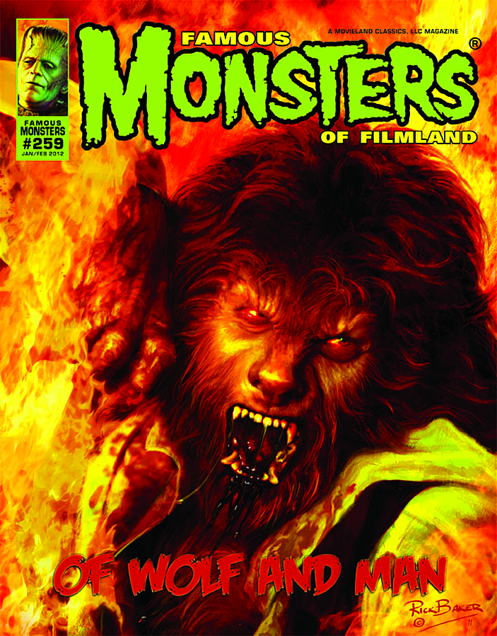 This December, Famous Monsters likes its Lycans! Featuring interviews with Oscar-winners for 2010's Wolfman, Rick Baker and Dave Elsey. Also, we'll be stepping into another dimension as we re-visit The Twilight Zone with stories and interviews from the show's cast and crew. Plus, Previews readers will now have the opportunity to order both covers! Issue # 259 sports its second Rick Baker cover with his original design of The Wolfman, and Bob Lizarraga's rendering of The Twilight Zone.