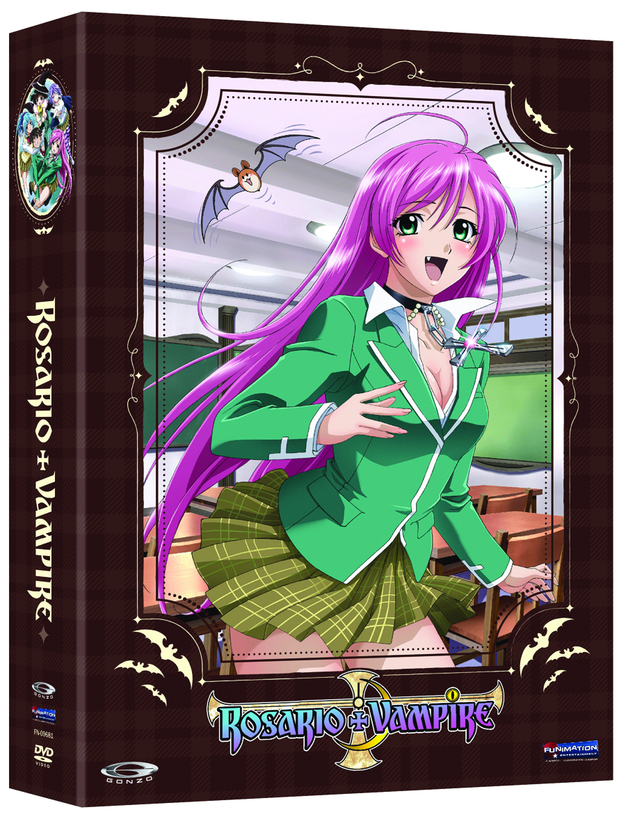 Rosario+Vampire revolves around Tsukune Aono, an average teenage boy who accidentally gets enrolled at the Yokai Academy, a private school for monsters and other supernatural beings. Fearing for his life - as no human can no of the existence of the school - he quickly befriends Moka Akashiya, a vampire who soon develops an obsession with his blood. As the school year continues, he meets and befriends other supernatural girls who take a romantic liking to him as well. These DVD sets collect the complete first and second seasons of the sexy, hilarious series.