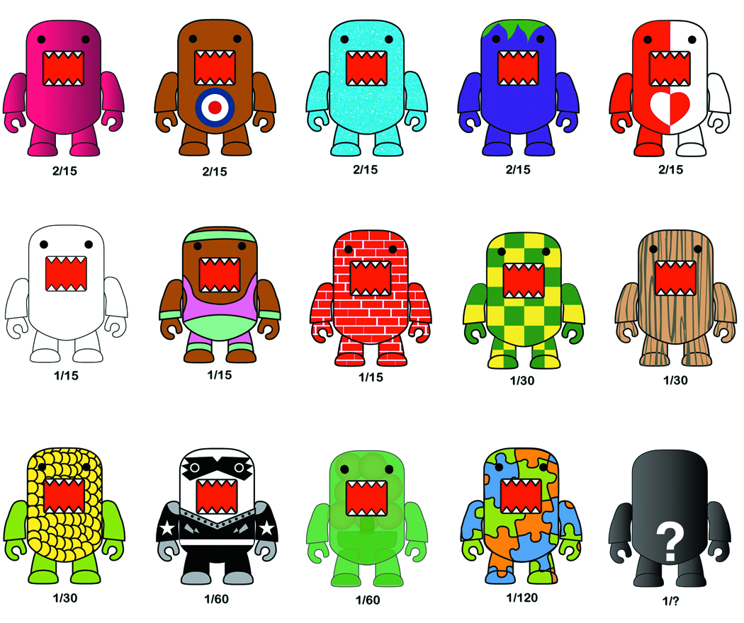 Dark Horse brings you an exciting series of creative designs for Domo, who continues to enjoy the Qee treatment from our collaborators at Hong Kong's Toy2R. The popular 2" Qee minifigures have proven to be a great fit for this character, and collectors and retailers seem to just want more. As before, chase figures are being produced with common figures. There will be a total of fifteen different versions, with varied levels of scarcity.