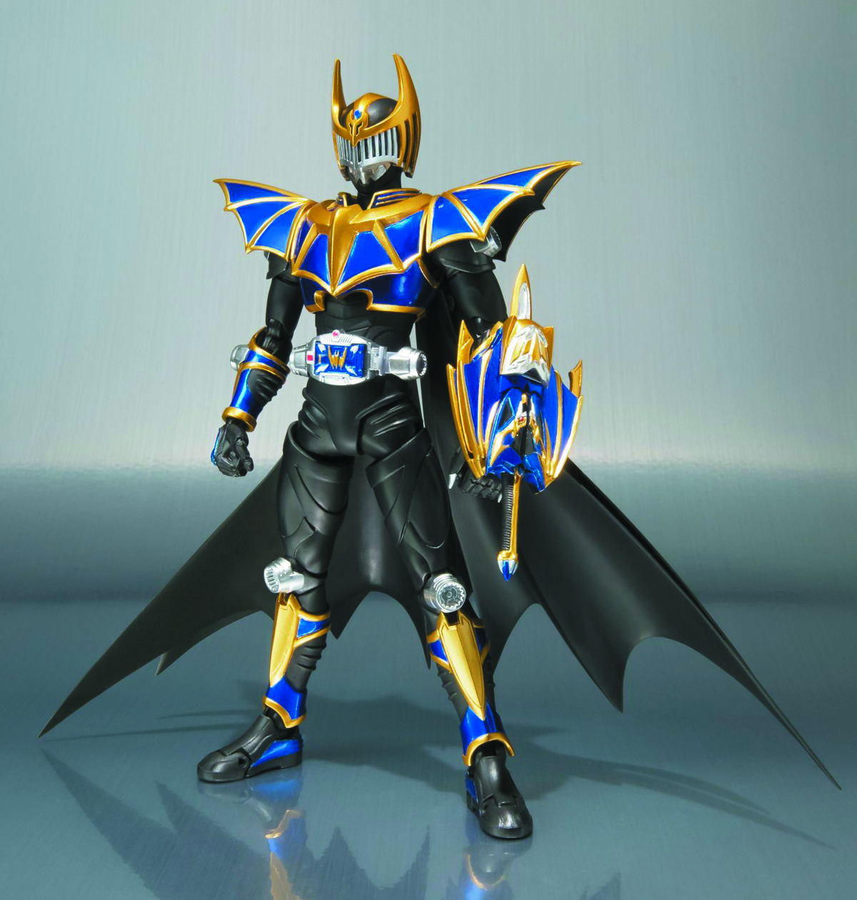 Kamen Rider Ryuki series joins the S.H.Figuarts line-up boasting a full array of accessories and option parts, metallic colored body, articulated cape, as well as die-cast material in feet area for enhanced weight and balance. A full-array of advent cards (7 total), dark visor accessory capable of transformation to dark arrow, dark blades accessories, interchangeable hand parts, and special display stand are fetured in this deluxe action figure set.