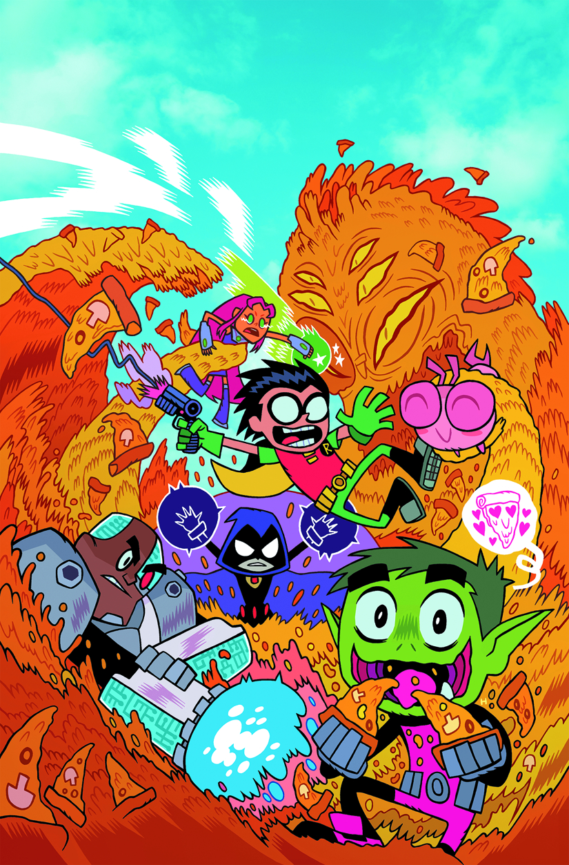 Based on the hit new TV show, feast your eyes on this all-new, all-ages comic book series! Join Robin, Starfire, Beast Boy, Cyborg and Raven as they display their unique brand of hijinks, mayhem and justice! But giant pizza monsters aren't the only dastardly and delicious villains on the menu... so dig in, Titans!