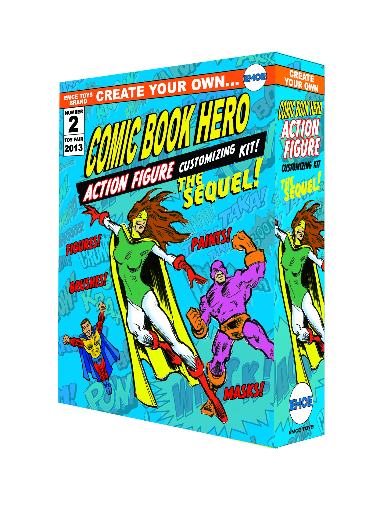 A PREVIEWS Exclusive! It's a possible action figure, it's a customizable model kit - it's both! The long-awaited sequel to EMCE's "Create Your Own Comic Book Hero" action figure customizing kit contains all the materials that made the first kit a smash, but now with the female and superhuman male figures to make your custom collection complete! Now you can finally create your own league of superheroes with a high level of customizability. Each kit contains one 4" scale male body, one 4" scale female body, one 4" scale superhuman male body, five different heads, two pairs of hands, two capes, two paint brushes, six various color water-based paint, one set of decals, and an instruction manual.