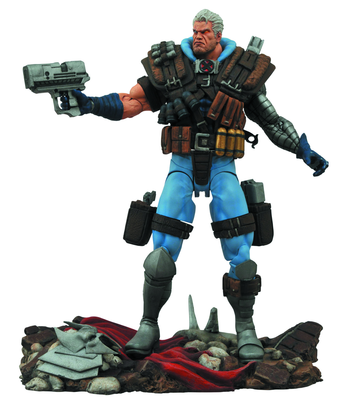 A Diamond Select Toys release! Because you demanded it, the return of the man called CABLE! The founder of X-Force, Cable always comes ready for battle, with big guns and even bigger ammo, and since his debut he has loomed large in the Marvel Universe. Now, he's traveled from the past to rejoin the 7" Marvel Select action figure line! Wielding multiple weapons, including one that can be mounted on his shoulder, Cable comes with a detailed display base, referencing his most famous foe, Stryfe, and features multiple points of articulation. Figure and base come packaged in display-ready Select packaging, with spine artwork for shelf reference.