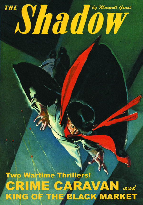 The Shadow crisscrosses the country battling thieving black marketeers in two wartime thrillers by Walter B. Gibson. First, the enigmatic "King of the Black Market" endangers the future of our nation at the time of its greatest peril. Then, coast-to-coast car thefts sabotage the war effort until The Shadow shuts down the subversive "Crime Caravan." Plus, a lost