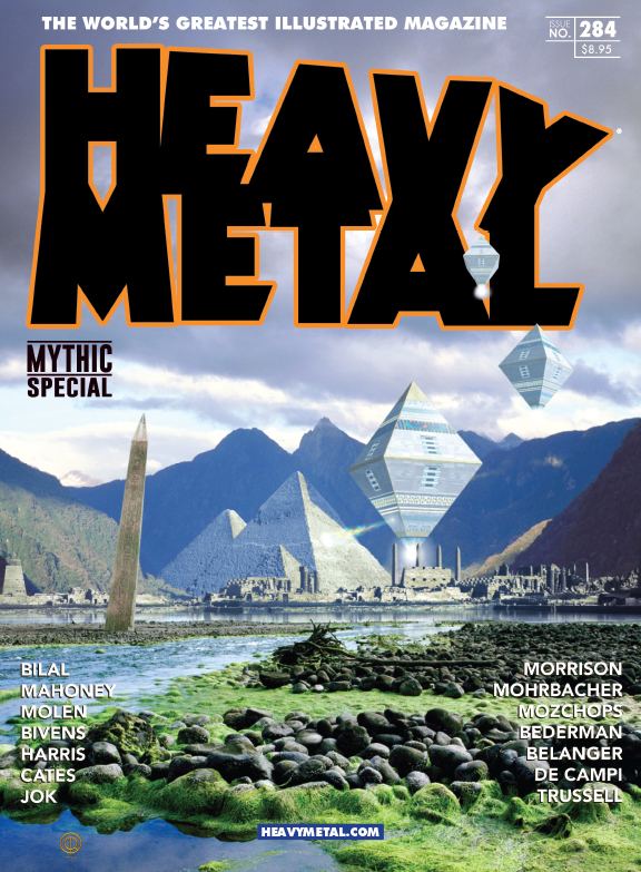Grant Morrison continues his reign as Editor-in-Chief by contributing two new tales to shock and outrage! The first is sci-fi epic, MYTHOPIA, written by Morrison with layouts by publisher, Kevin Eastman, and art by Bill Sienkienwicz. The second is a tale of sword, sorcery and psycopaths in THE SAVAGE SWORD OF JESUS CHRIST! Also on deck is a new story by Eniki Bilal and the continuation of Salsa Invertebraxa by Mozchops and Zentropa by John Mahoney. Cover is is a wraparound cover of Heavy Metal's iconic warrior queen, TAARNA, by Luis Royo. Cover B is a painted cover of Adolf Hitler facing off against a sword weilding take on the Christ by famed painter, Ken Kelley (Kiss Destroyer and Love Gun album covers). Cover C...well, that's trhe best surprise of all!