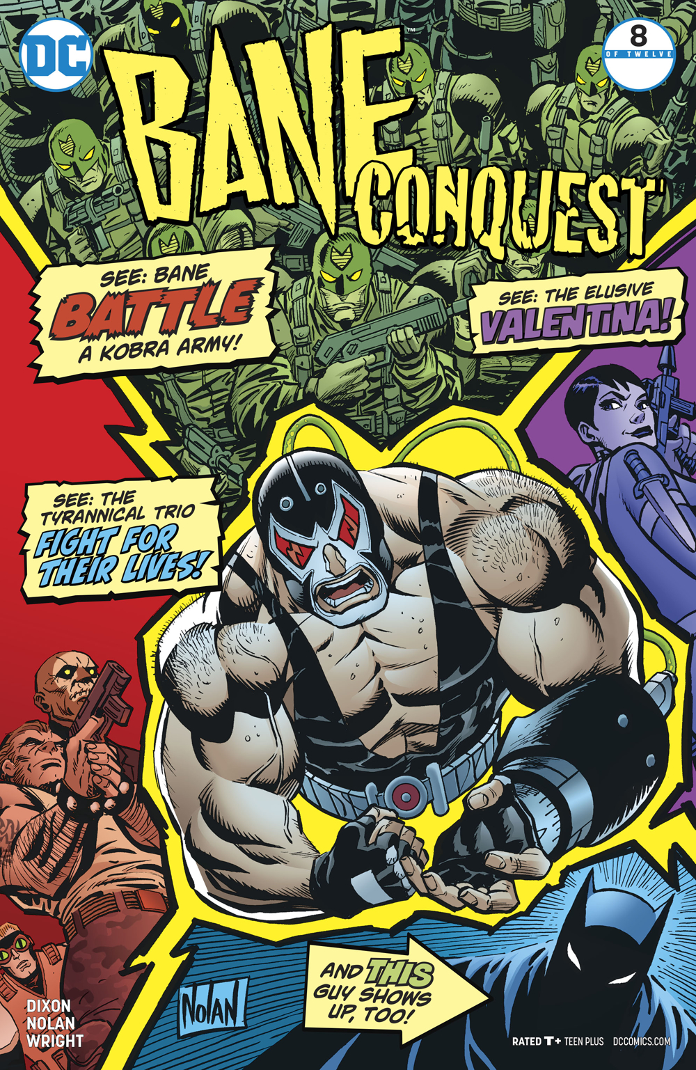 By trying to abduct the infant Naja-Naja, Bane has made an enemy of Kobra. And the cult won't stop until he's dead. A global manhunt for the Man Who Broke the Bat begins but he's not one to run or hide. With his trusted comrades Bird, Trogg and Zombie he plots a strategy to take the fight to the underworld empire run by Valentina. Bane's original creators continue their epic tale of mayhem, revenge...and conquest!