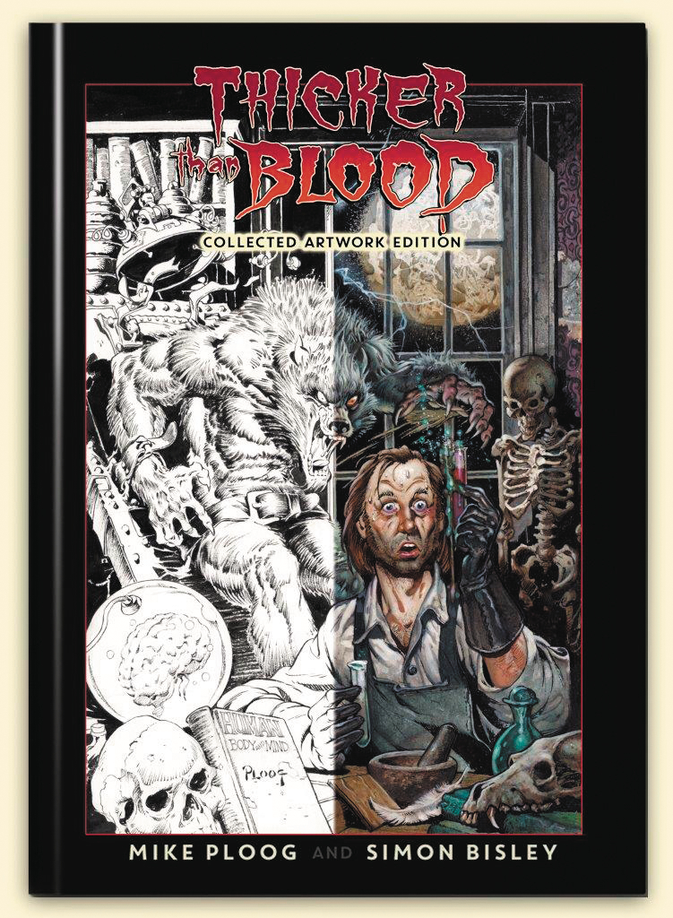 Thicker Than Blood Collected Artwork Edition" is an oversized 12" x 17" hardcover art book that collects and reproduces all of the original artwork that was produced for the three-issue comic series. In this book, for the first time, each stunning page is published at full size. This is an "original art-sized edition" unlike any before it. Not only does the book reproduce the art at the original size it was created, it also represents the work of Two artists, not just one. Further, it covers the mediums of line and paint, side by side, containing the equivalent of six issues: three issues of beautiful pen and ink line art by Mike Ploog and three issues of fully-painted art