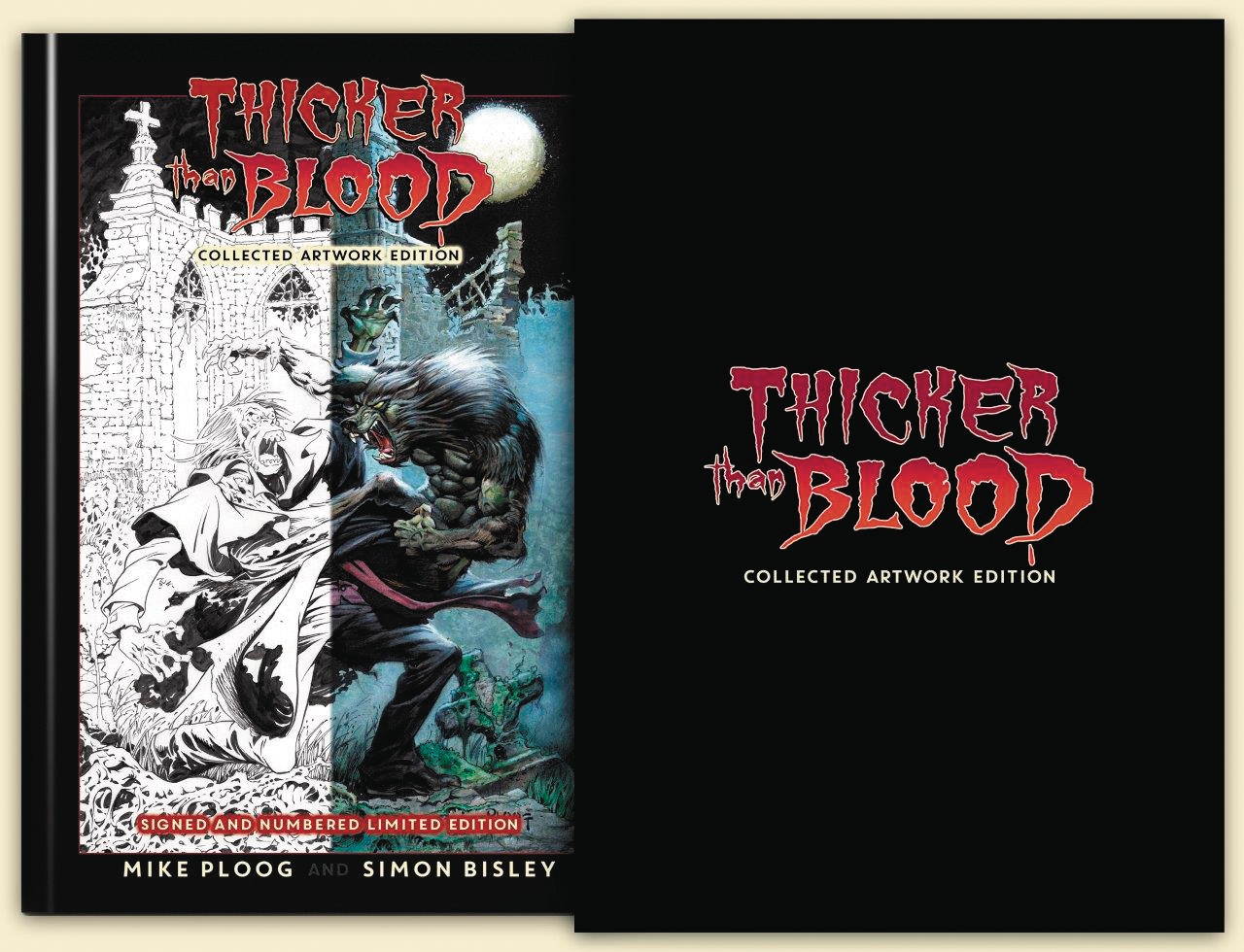 The "THICKER THAN BLOOD: Collected Artwork Edition" Signed and Numbered Limited Edition is signed by the three creators of the "Thicker Than Blood" comics: Simon Reed, Mike Ploog and Simon Bisley. It features a deluxe slipcase and is strictly limited to 175 copies.