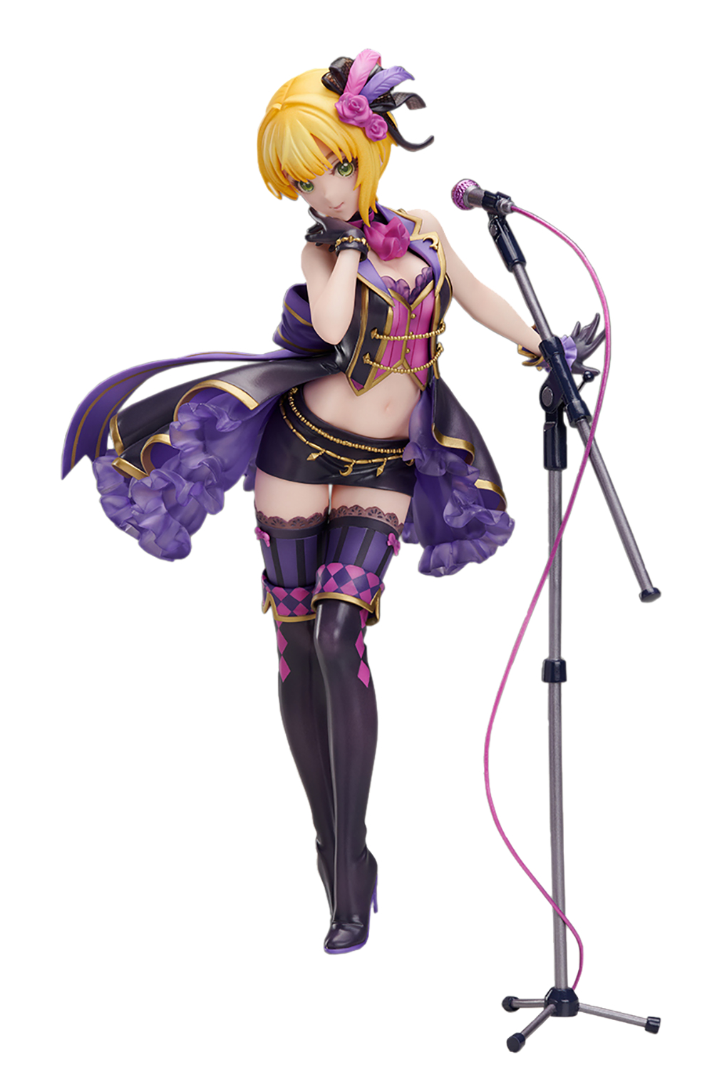 Tulip, and her pose perfectly fits her fun and flirty personality! The dark shades of purple and black in her stage outfit make for a lovely contrast with her pale skin and light hair, and there are so many details in her costume and paintwork to admire! She even comes with a microphone stand to complete the image!