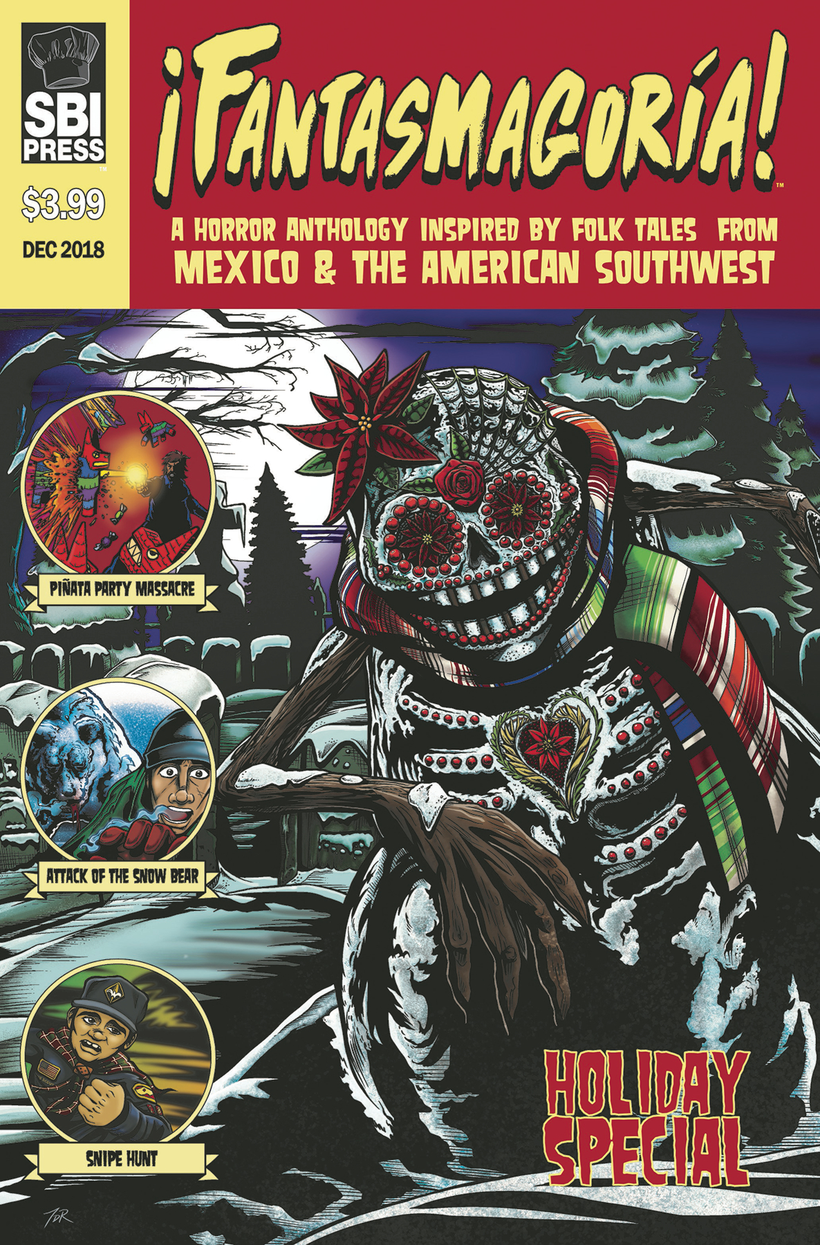 Fantasmagor a fans! Your favorite quarterly horror anthology based on real folklore from Mexico and the American Southwest is back, just in time for the holidays! This time around we're filling your stockings with three brand new stories about killer toys, haunted snowmen, and winter break rituals gone wrong! When greedy business owners build a confiter a atop an ancient Aztec burial ground, the ghosts of 666 ticked-off Mexica warriors possess the store's stock of colorful piñatas and wreak havok on the town! While celebrating an unprecedented snowstorm in New Mexico, two orphans dress their snowman in the clothes of a deceased relative, triggering the darkest "Christmas miracle" you've ever seen. And more!