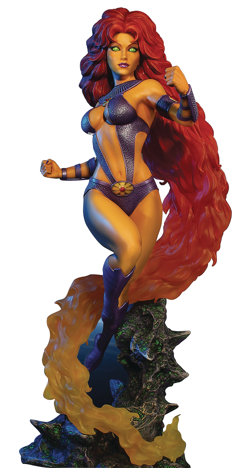 Starfire stands at an amazing 16 inches tall on her sculpted alien terrain base and features hair cast from partially transparent resin for exciting realism! Add this beautiful maquette to your