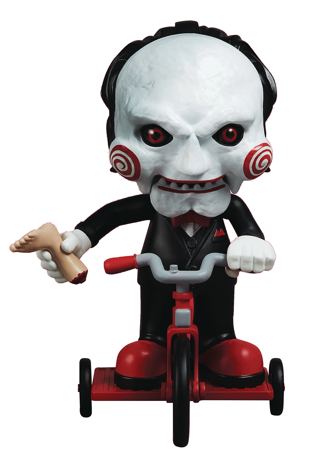 From Enterbay Entertainment. With a classic horror face, This Billy features two level arm joints for more flexible articulation, rotatable eyeballs and palms, and an openable mouth for biting the little doll! With movable arms and a little red mole on his butt, this PVC Billy stands about 4.5" tall and comes with character-specific accessories: a scooter, Broken Human Foot, and a Little Pig Doll!