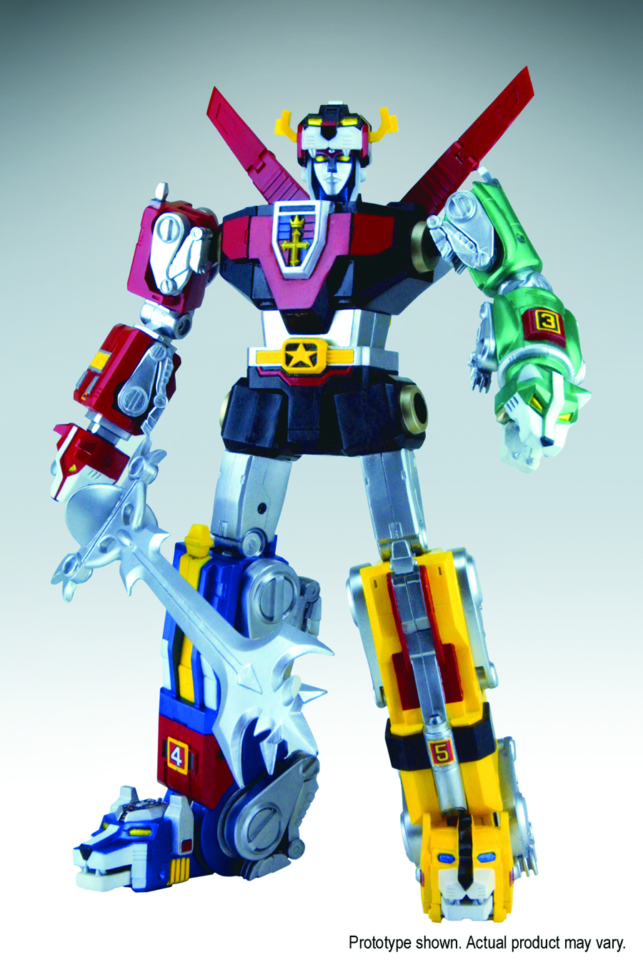 Voltron is back in a big way! These high-quality ultra-detailed transformable lions offer the ultimate re-creation of the legendary Voltron Force. Constructed from die-cast metal and sturdy plastic, the five Robot Lions transform and unite to create Voltron, Defender of the Universe. This 11" tall