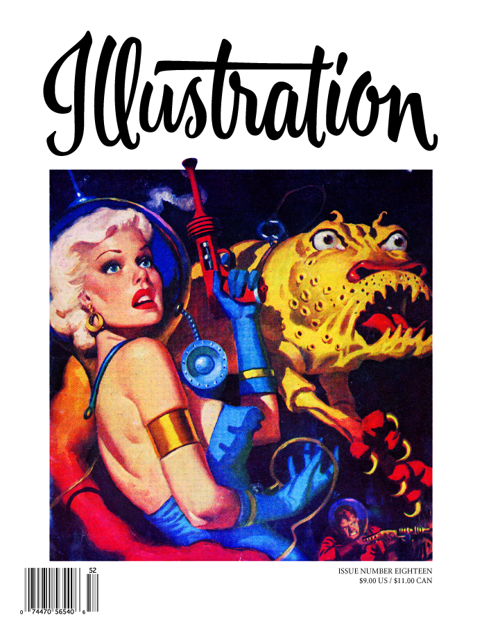 Planet Stories pulp magazine covers. The article is written by David Saunders, and is profusely illustrated with scores of never-before-seen artworks and pulp covers. Also featured In this issue is the second part of the series on the Cooper Studios, by Neil Shapiro, focused on the work of Murray Tinkelman. Rounding out the issue is an extensive story on Louis Glanzman, known for his many paperback covers and magazine illustrations. Also included are book reviews, a guide to events and exhibitions, and much more!