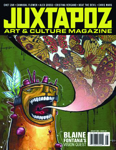 Juxtapoz gives readers the latest in modern art worldwide! Each issue features interviews and reviews of artists, as well as photos from galleries and exhibits, rare sketches, portfolios, and full-color layouts of painters and cartoonists and their works.