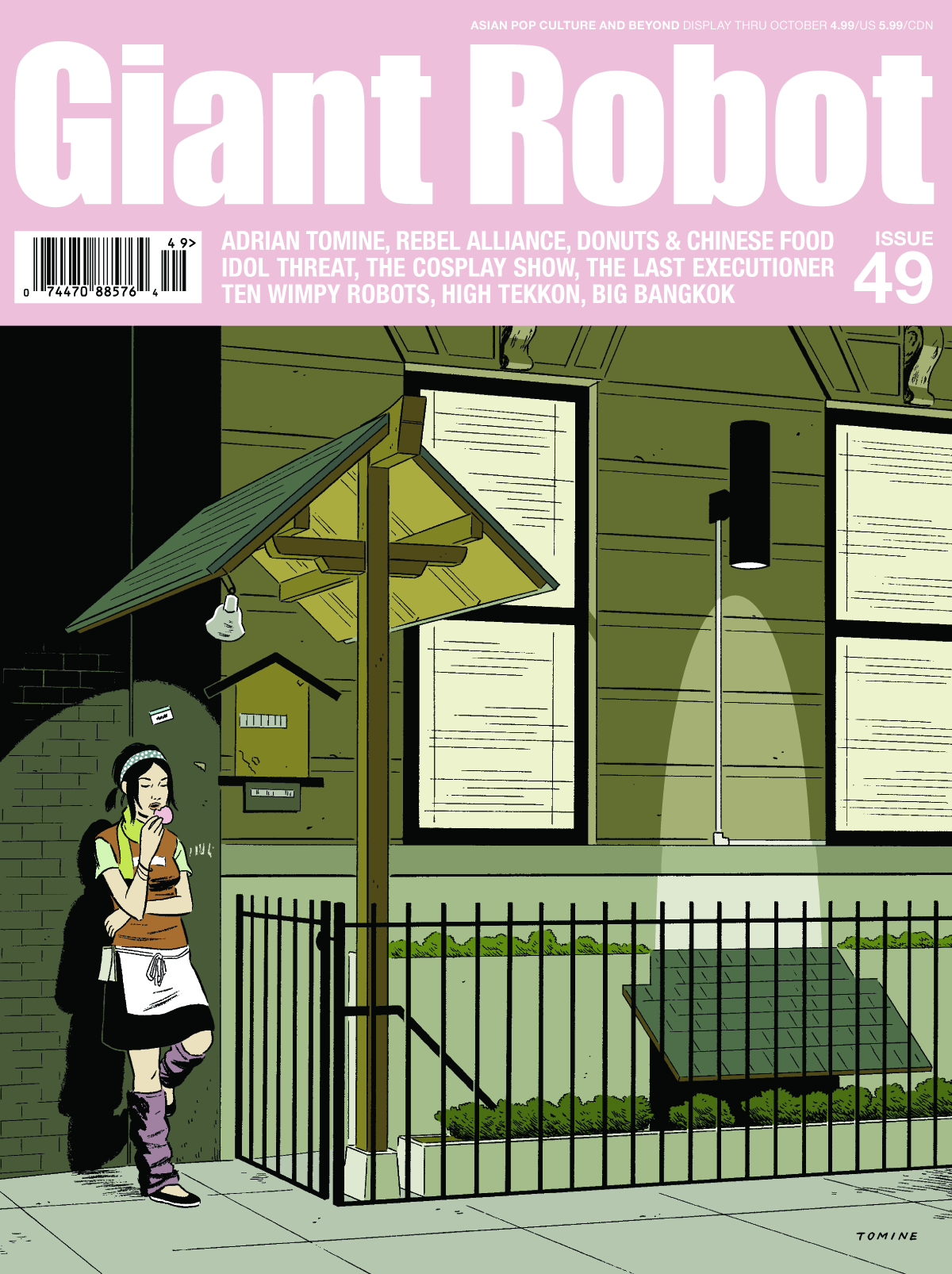 Giant Robot magazine has documented, investigated, and promoted Asian and Asian-American popular culture since 1994. Every issue covers new cinema, up-and-coming artists, unheard music, indie comics, manga, and anime. Issue 51 is slated to include Takashi Murakami's new art movement, Thailand's king of trash cinema, the idiot genius of DIY comics, and much more. No flower arranging, origami, wooden shoes, or yellow-face posers allowed.