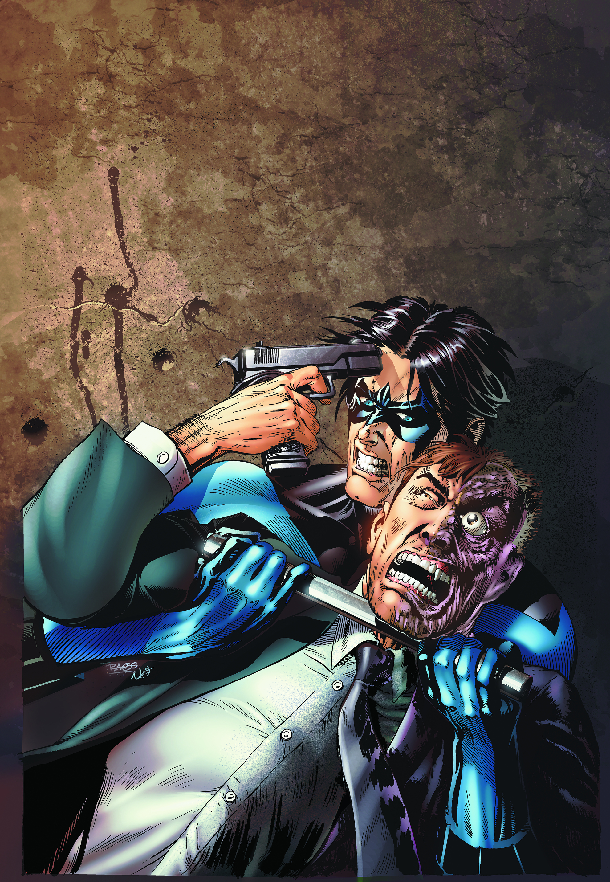 Special oversized "Batman R.I.P." tie-in issue! Believing Nightwing responsible for the death of an old flame, Two-Face has sworn his revenge upon Batman's first Robin and New York City itself. Armed with the same acid that turned him into Two-Face, Harvey Dent plans to scar half the population of New York to make them pay for his loss. And without The Dark Knight around for help, it's up to Nightwing to stop the Batman's most duplicitous and dangerous villain. Beware the acid rain as Nightwing confronts Two-Face in the final chapter of "The Great Leap"!
