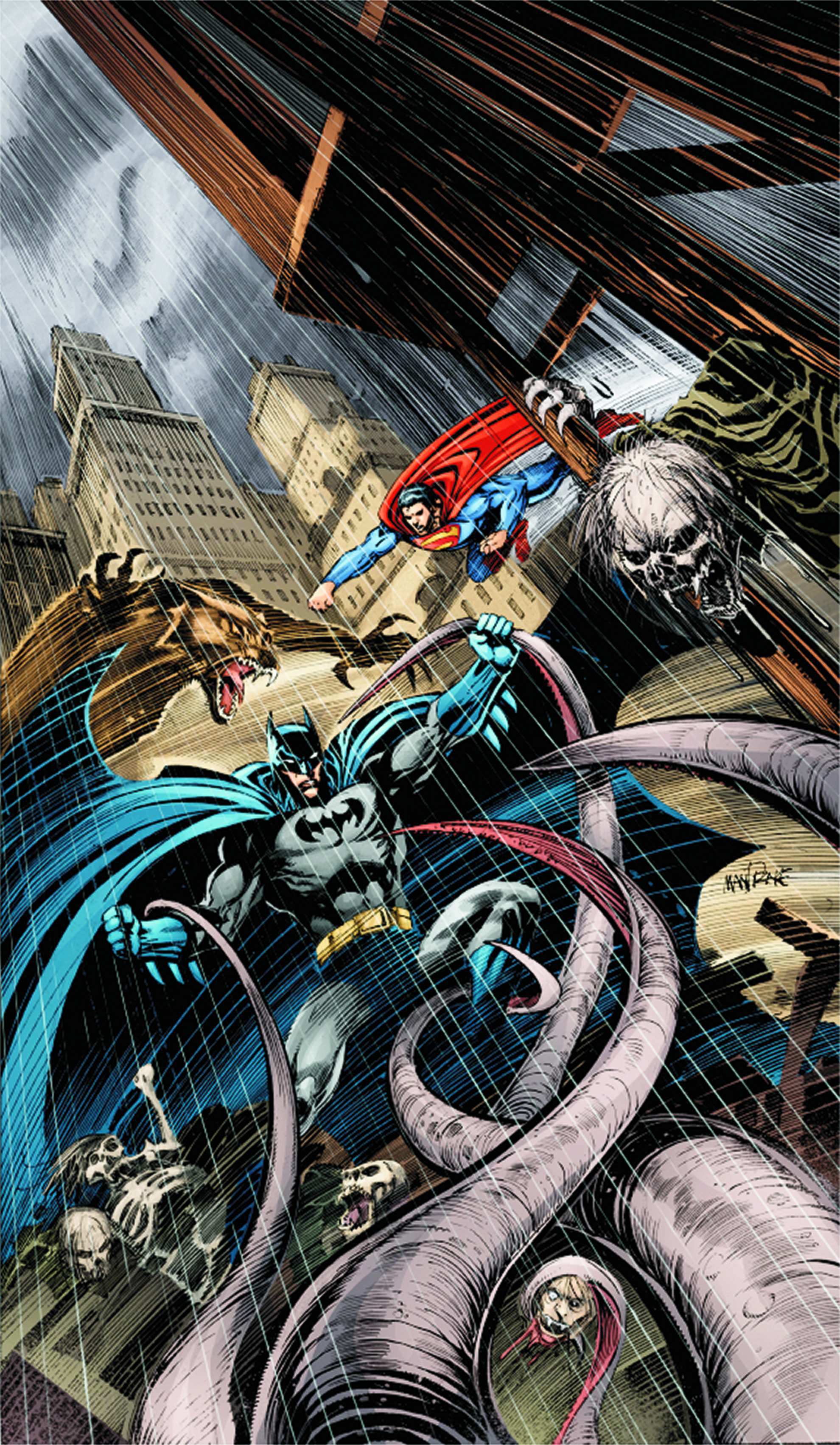 The evil Dr. Combs has reanimated the dead and turned innocent victims into monsters from beyond! Artificially created vampires and werewolves now prowl the streets of Gotham, and only the combined might of The Man of Steel and The Dark Knight can hope to stop them. But when a rogue vampire named Dimeter and a feral werewolf called Janko decide to join their side against Combs and his legion of the undead, Superman and Batman will have to save themselves - and all of Gotham - from the creatures of the night! Good thing they've called in Green Arrow and his wooden and silver-tipped arrows for help!