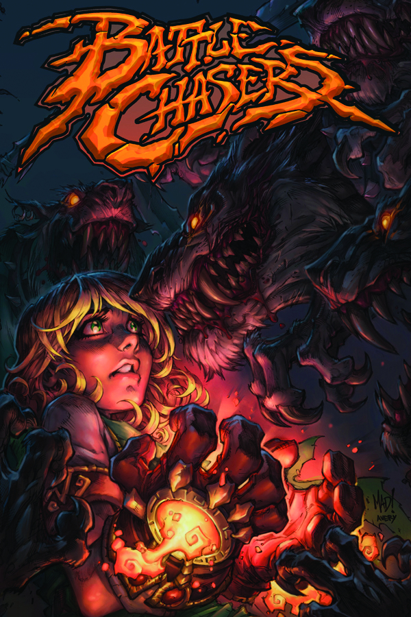 Collecting every issue ever published of one of the most beloved comic book series of all time, this over-sized graphic novel is bursting at the seams with adventure! Follow young Gully as she searches for her missing father with the help of Garrison, a legendary swordsman; Knolan, the crafty wizard; Calibretto, an outlawed Wargolem; and the notorious mercenary Red Monika! Assaulted at every turn by a cast of memorable villains, Battle Chasers is packed with over-the-top action from cover to cover! Don't miss this definitive collection, which includes never-before-seen sketches and new artwork, including a fold-out poster!