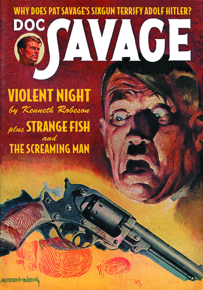 Doc Savage has only two days to unmask the disguised Adolf Hitler, who has fled a collapsing Nazi Germany! Then, the Man of Bronze is framed for murder as he hunts an undercover Gestapo officer. Finally, after Johnny Littlejohn vanishes on a secret mission for Army Intelligence, Doc goes on a rescue mission to the Far East. Can he unmask a murderous fugitive from Nazi Germany in time to save his aide?