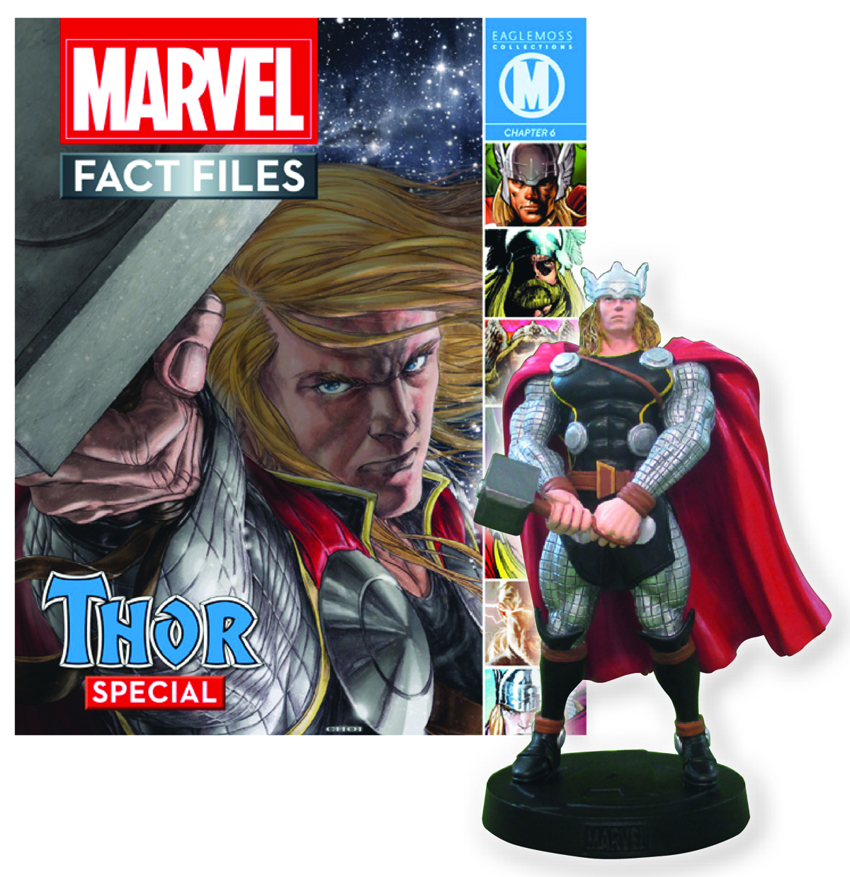 Marvel Fact Files Collection. Based on his most recent appearances in Marvel's best selling comic series, the highly detailed, hand painted model of Thor stands tall at 142mm. Complete with a magazine featuring the Asgardian God's 60 year publishing history, the Thor special acts as an additional chapter to your