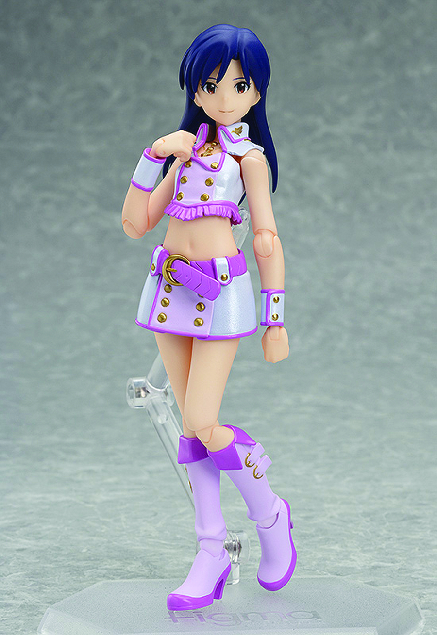 Idolm@ster Million Live outfit! Using the smooth yet posable joints of figma, you can act out a variety of different scenes. A flexible plastic is used for important areas, allowing proportions to be kept without compromising posability. She comes with three expressions including a gentle smile, a serious singing face and an embarrassed face. Optional parts include a microphone, speaker and lighting equipment. A special di:stage unit is included to create a stage for her to perform on, while an articulated figma stand allows for a variety of poses.