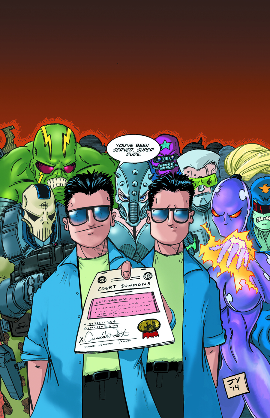 Sometimes real puds have super-powers. So what's a poor victim to do? What everyone else does - get a lawyer and sue their ass! But who has the courage, the fortitude... the cluelessness... to serve the Summons on super-schnooks like the fearsome Ocelot or the cunning Dominatrix? Cheech and Clive O'Huang, cause their business is Serving Supes!