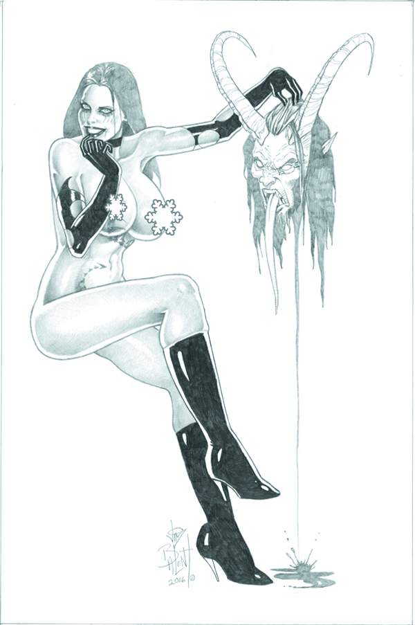This deluxe litho plate edition comes bagged and boarded and includes a copy of Tarot #101 (either cover) and a black & white 6 1/2" x 10" litho of naughty Raven Hex, "Krampus Lost His Head." This limited collector's litho is penciled by Jim Balent and comes signed by the artist. Limited to a print run of 500.