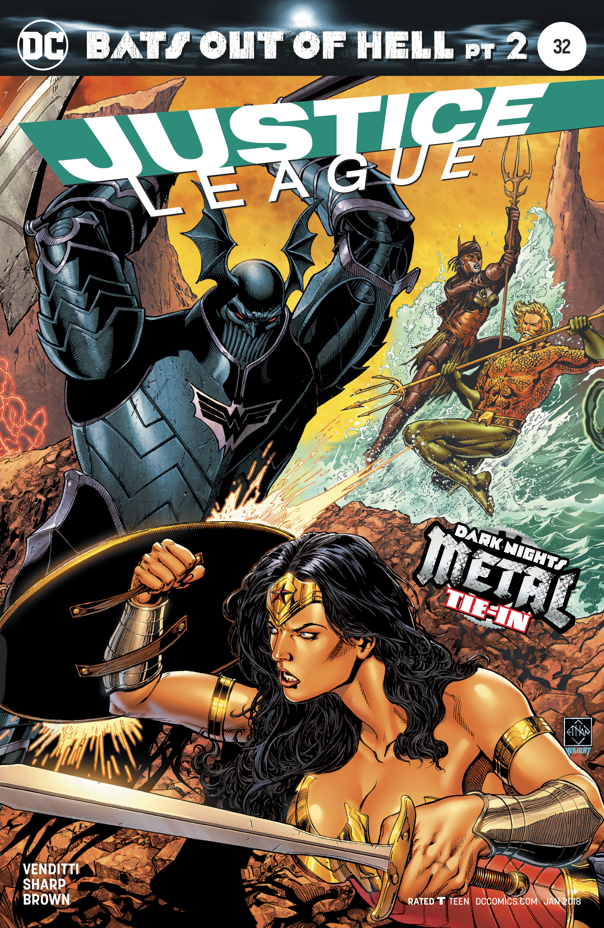 A METAL tie-in! "BATS OUT OF HELL" part two! The Justice League have been separated by the dreaded Dark Knights and are forced into twisted Bat-Caves designed to kill them! The Batman Who Laughs and the Murder Machine experiment on Cyborg, seeing how he reacts to the horrors of the Dark Multiverse! Can the Justice League survive their worst nightmares made real?!