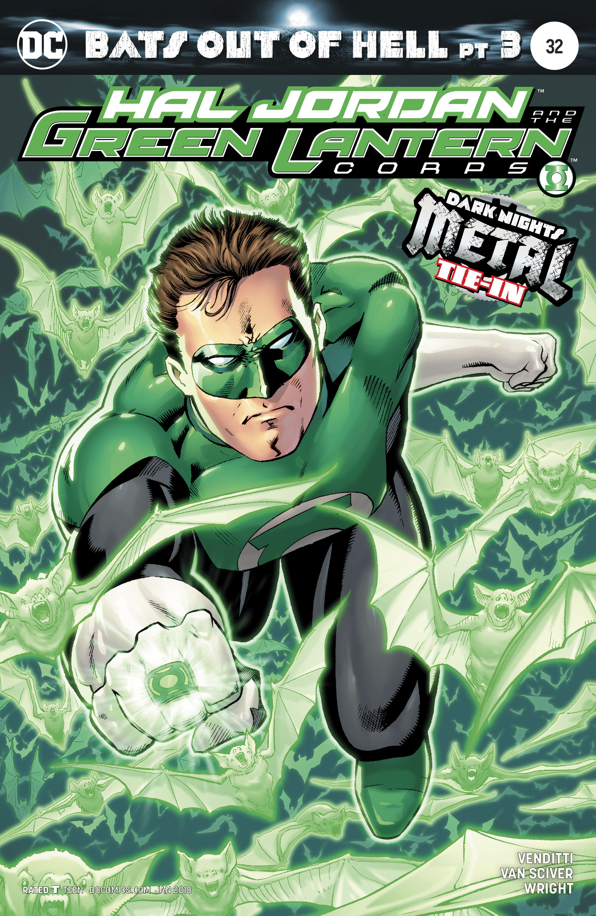 A METAL tie-in! "BATS OUT OF HELL" part two! The Dawnbreaker descends on Coast City, ready to suck its light away before moving on to the rest of our world. Backed up by the power of the Justice League, Hal Jordan stands ready to stop the perverted Lantern-until the Batman Who Laughs steps out of the shadows.