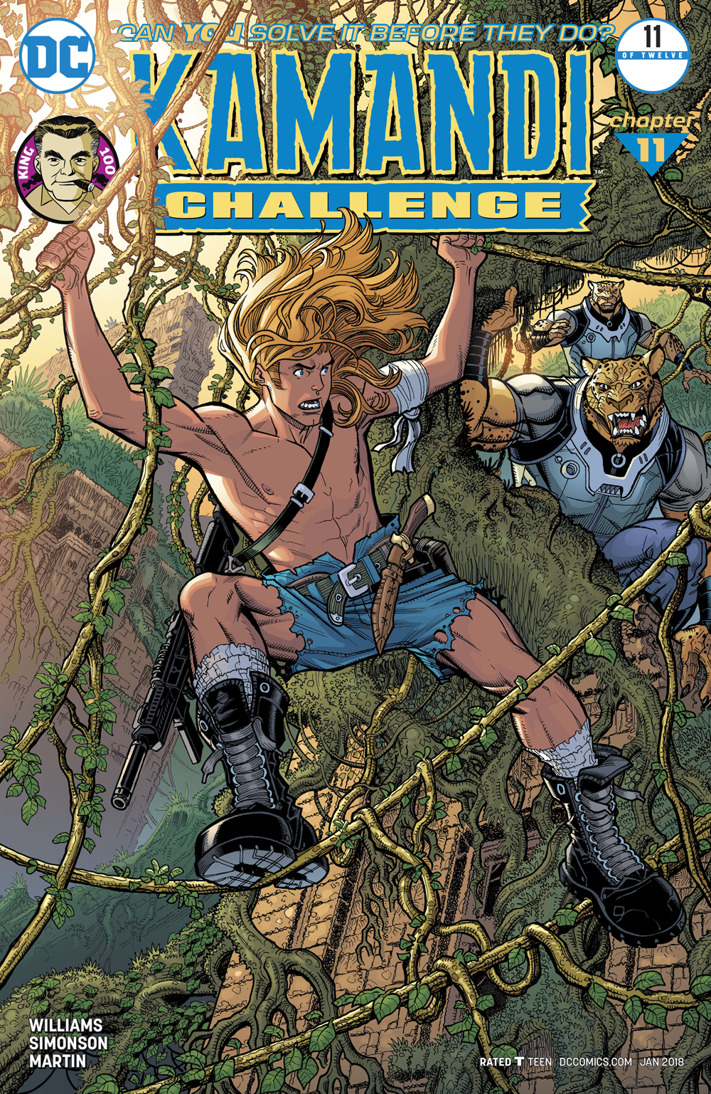 After the jaw-dropping ending of last issue, Rob Williams and comics legend Walter Simonson take our hero to new heights... space! It's the penultimate issue of this acclaimed round-robin series, and the mysterious Misfit has imprisoned Kamandi on his mothership headed on a one-way trip to the Tek-Moon! Now, Kamandi must decide between finding his parents and escaping his captors for good. It's time for the last boy on earth to become a man. Will he be up to the challenge?