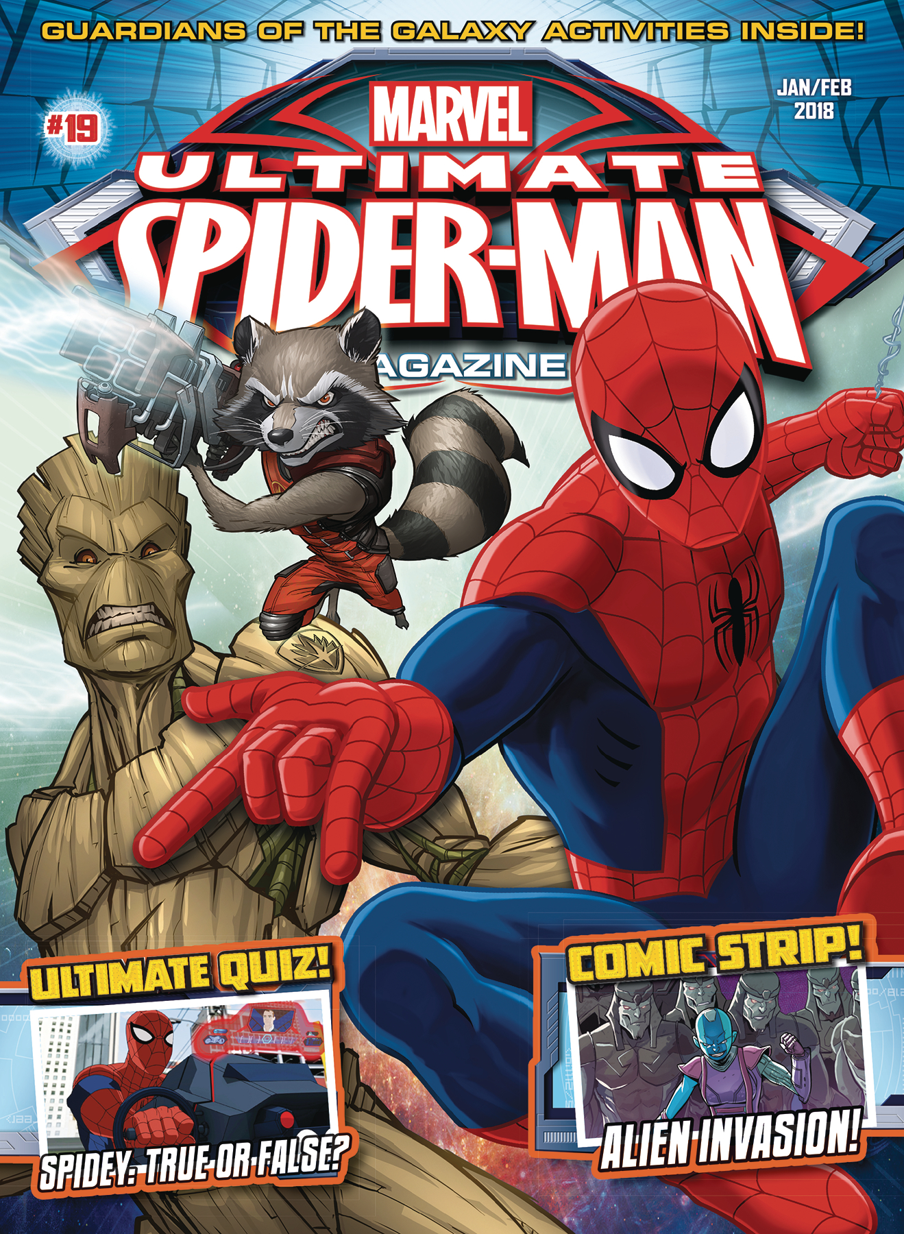 The summer's biggest movie stars crossover just in time for their DVD releases! Rocket and Groot pay Spider-Man a visit, but aren't they supposed the good guys? Why are they fighting Spider-Man? Find out if they can settle their differences in time to team up to beat Nebula! Kids who loved the movies will love this magazine too!