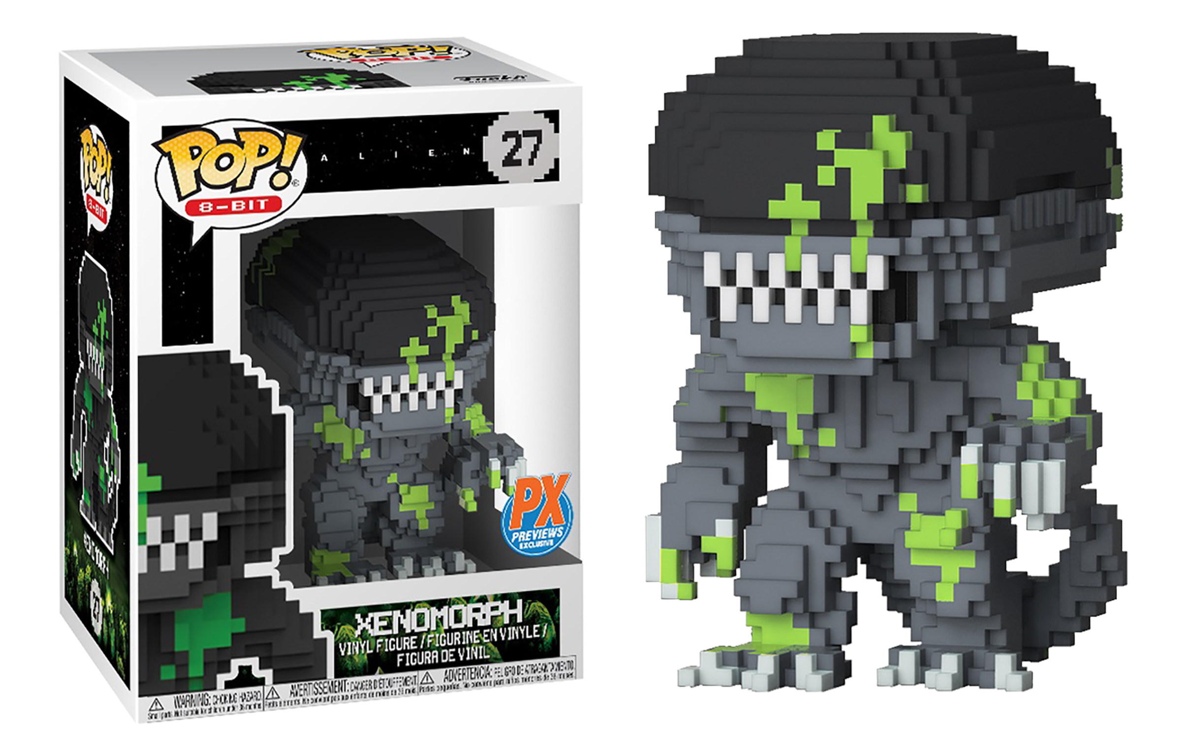A PREVIEWS Exclusive. Funko collectors will be feeling a great sense of nostalgia with Funko's new line of 8-Bit POP! Vinyl Figures. This Splatter Xenomorph from the Alien series is looking terrifying covered in blood spatters! Standing 3 3/4" tall and sporting a pixelated design, this special variant is only available through PREVIEWS and your local comic shop. Window box packaging.