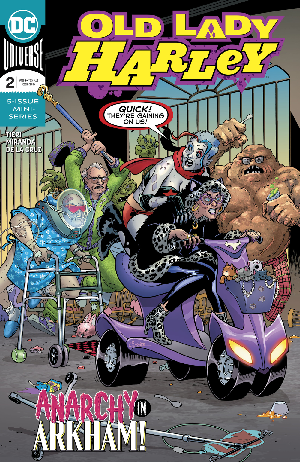 In this dystopian-future tale, Harley's quest to find out how The Joker could possibly still be alive has taken her back to their old stomping grounds, but Gotham City is very different nowadays! Nobody's allowed on the streets without the Batman's permission-but who is this Batman, anyway? Harley's only choice is to return to Arkham...the Arkham Home for Criminally Insane Retirees, that is! Fancy a round of bingo with the Riddler? Or some pool aerobics with Killer Croc?