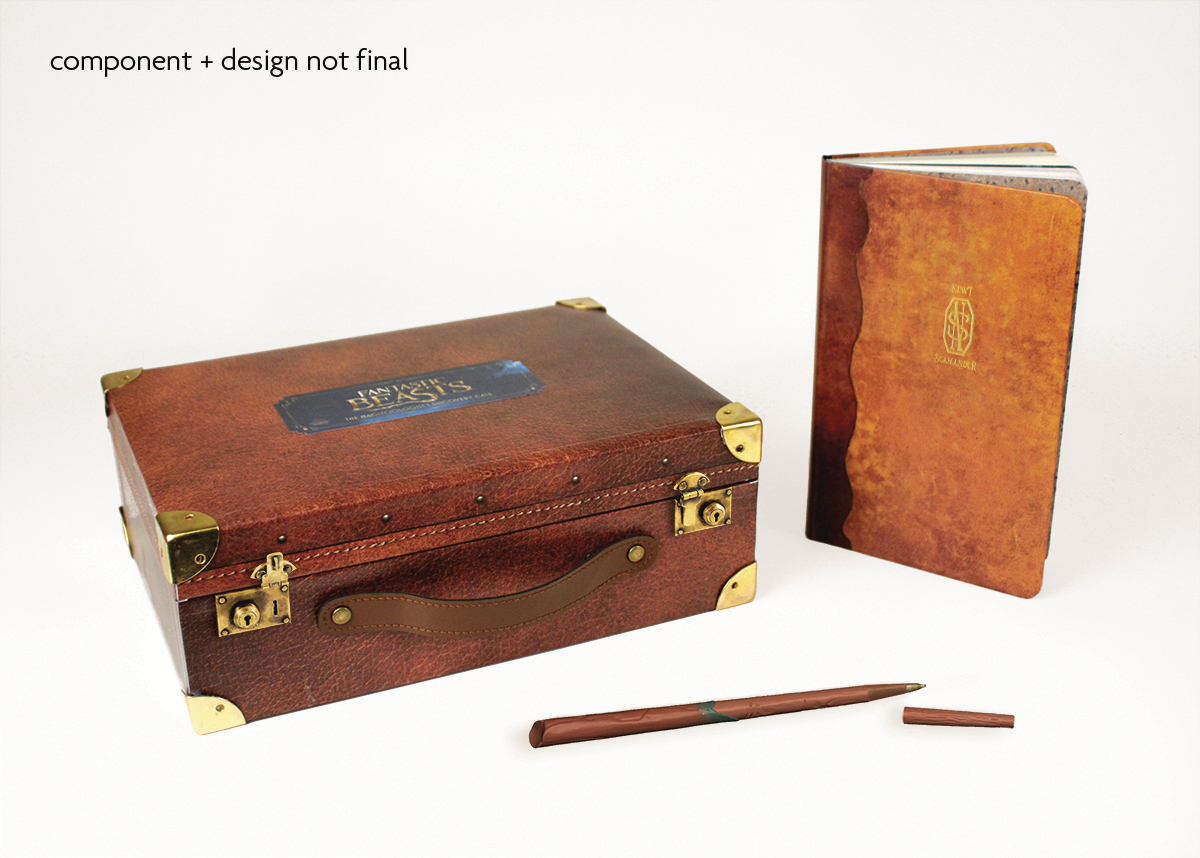 This deluxe enchanted replica of Newt Scamander's case is loaded with interactive special features to make any fan feel like a master magizoologist. Kit includes: Collectible replica of the case carried along on Newt's adventures, as packaging that doubles as a keepsake box, including metal closing clasps. "Muggle worthy" dial that allows the case to be opened in either no-maj or maj-friendly modes. In no-maj, a trick lid reveals mundane case contents, but in maj mode, further wonders are revealed: Sound activation: each time the case is opened, the sound of 1 of 7 different beasts is released. 128-page, 4-1/4 x 7-inch notebook including beasts encountered along Newt's journeys and field note illustrations. It's also your