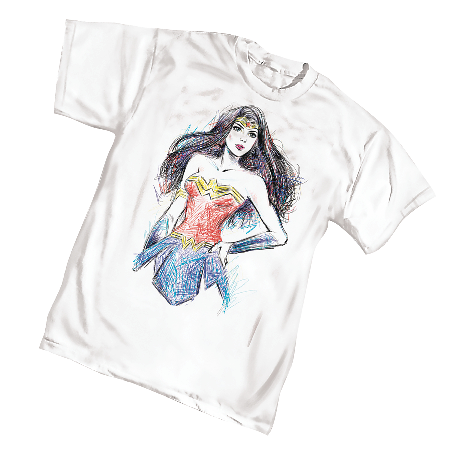 The Amazon Princess gets captured for posterity in color on the new Wonder Woman: Lines T-Shirt. Screenprinted in full-color on a white, Beefy-T shirt. This is the WW shirt you've been waiting for.