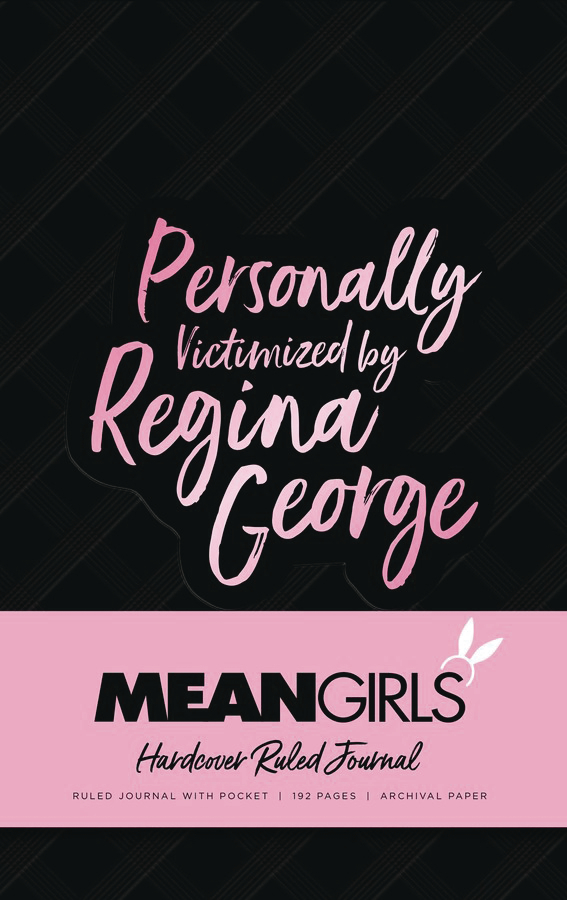 Mean Girls. Featuring graphics and imagery inspired by the iconic movie, this hardcover journal lies flat when open and includes 192 ruled pages, a ribbon placeholder, an elastic band, and a back pocket for storing keepsakes and mementos.