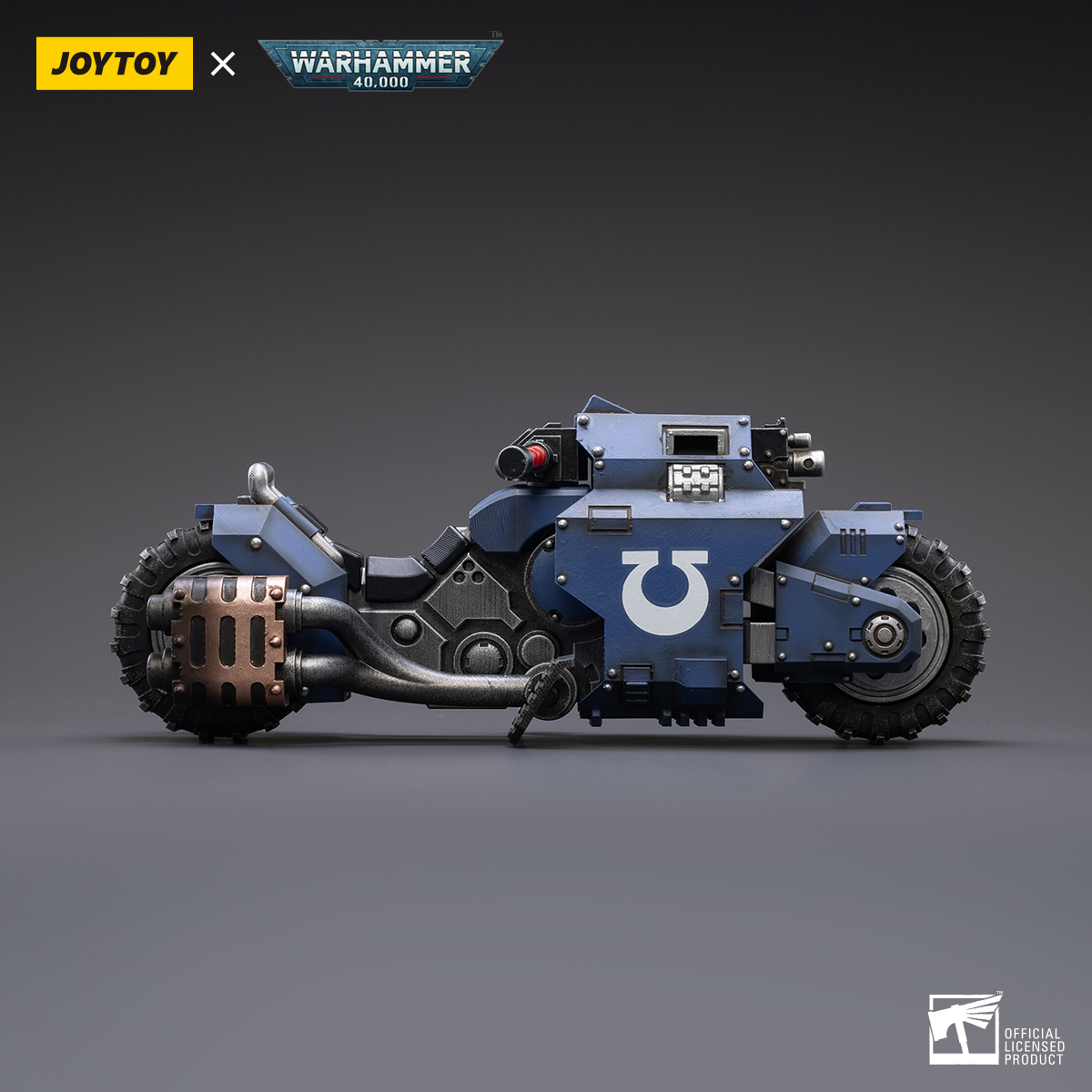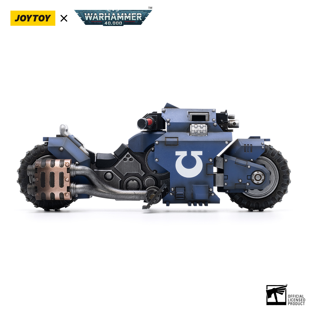 From JoyToy (Beijing) Tech Devco. Presenting the JoyToy Warhammer 40K Ultramarines Outrider Vehicle. The Outrider Squads rove prematurely of the principle traces, guarding flanks of bigger formations or searching down enemy infiltrators. Recreate crucial battles with this detailed 1/18 scale Ultramarines Outrider Automobile.