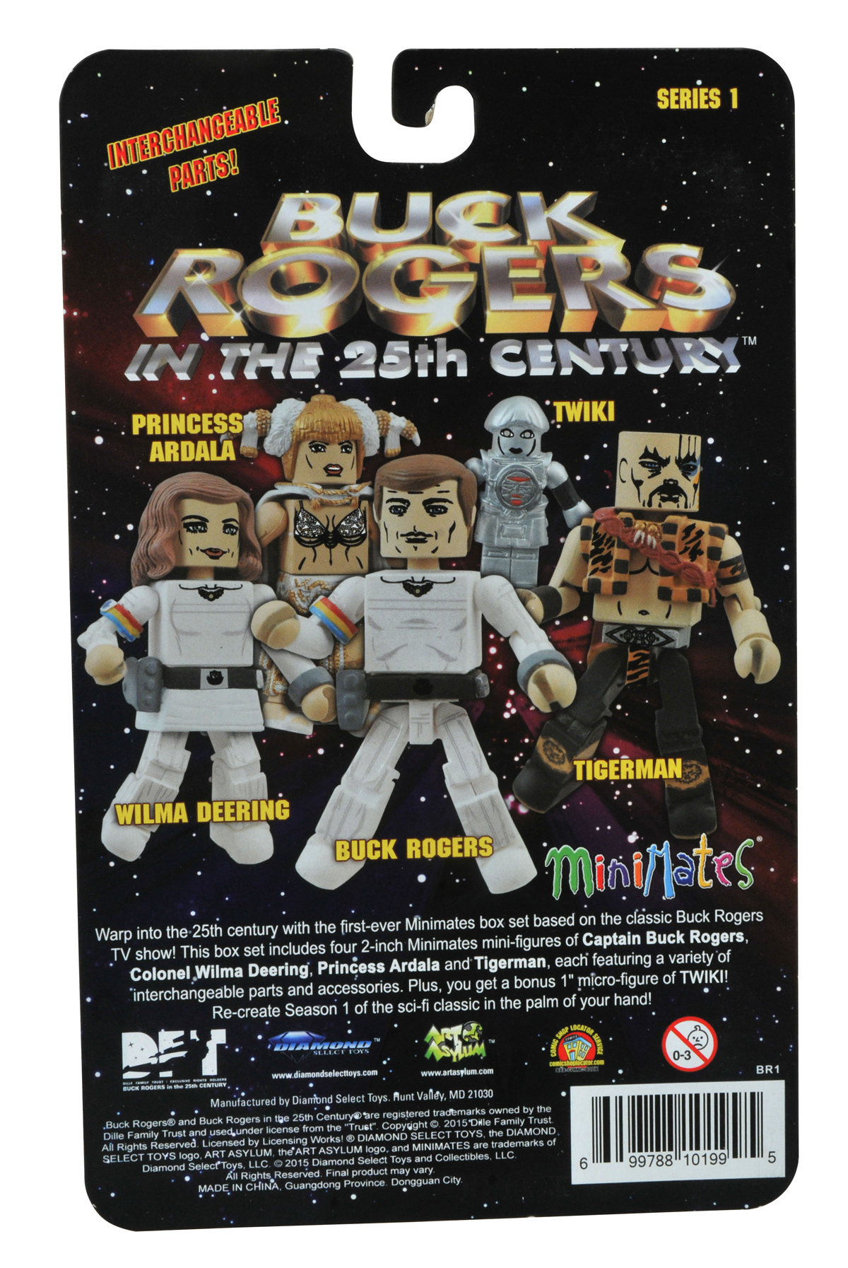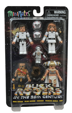 This box set includes four 2-inch Minimates mini-figures of Captain Buck Rogers, Colonel Wilma Deering, Princess Ardala and Tigerman, each featuring a variety of interchangeable parts and accessories.