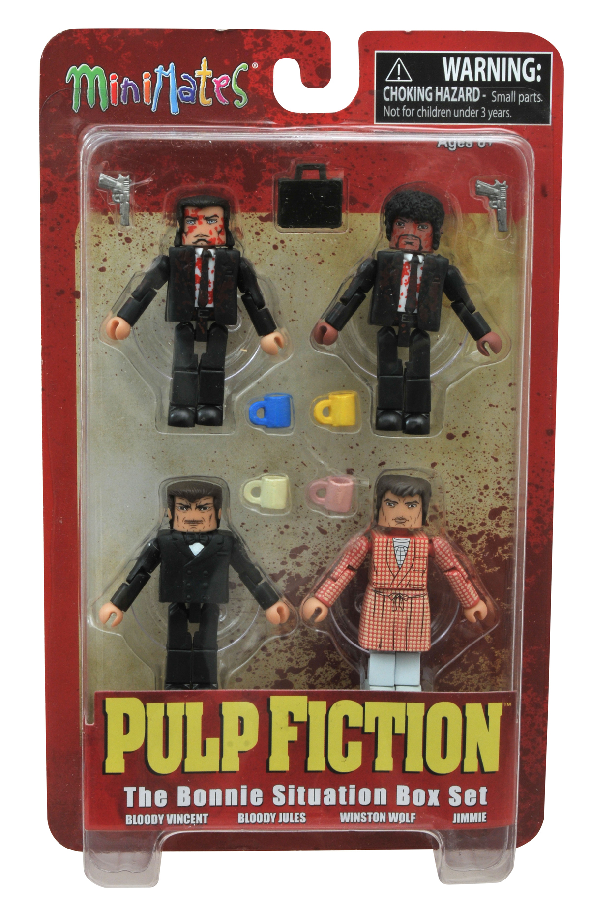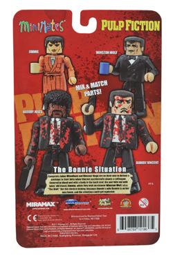 Re-creating the famous storyline form Quentin Tarantino's groundbreaking film Pulp Fiction, the "Bonnie Situation" Minimates Box Set includes Minimates mini-figures of Bloody Jules, Bloody Vince, The Wolf, and Jimmie.