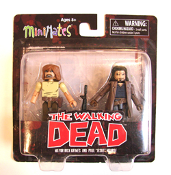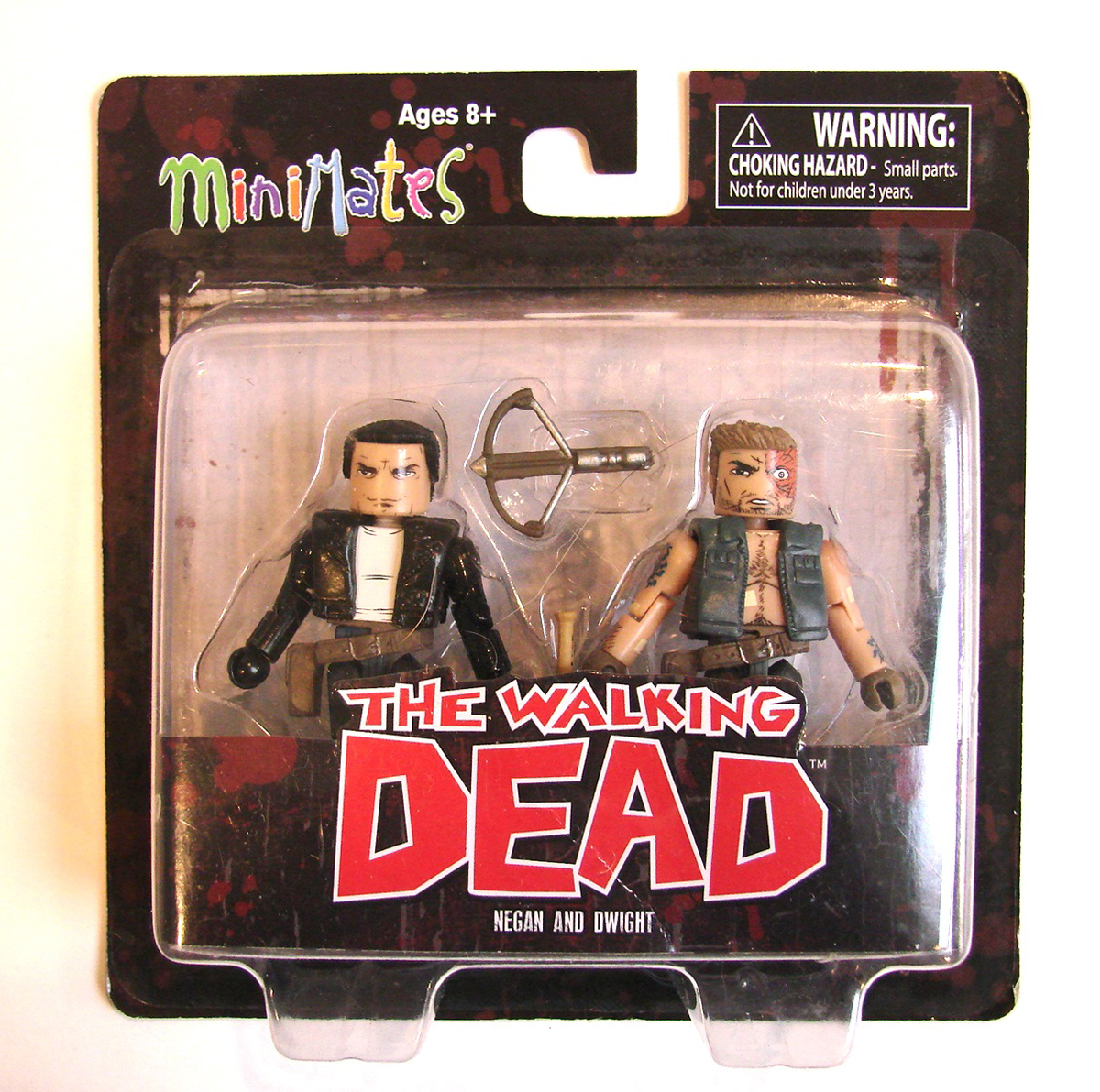 The newest series of Walking Dead Minimates is here, and this time it's war! Featuring characters from more recent issues of the hit comic book series, this assortment includes three different two-packs: Rick with Jesus, Negan with Dwight, and Marauder leader Chris with Zombie Holly, plus a one-per-case variant set of Scavenger leader Derek with Zombie Holly.