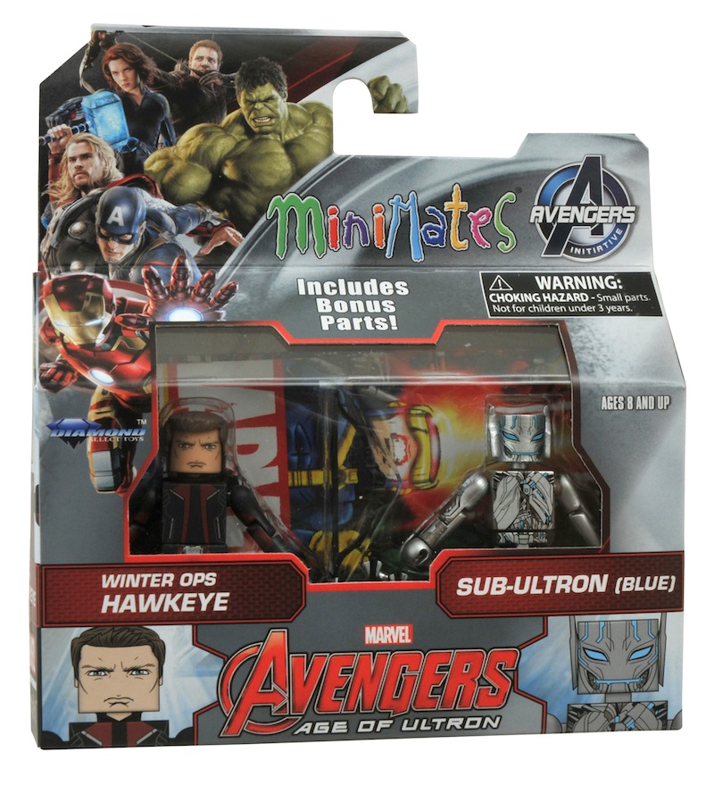 Four two-packs will feature Iron Man with Black Widow, Thor with Captain America, Hawkeye with Ultron and a rare one-per-case variant pack of Hawkeye in his long coat with a Sub-Ultron!
